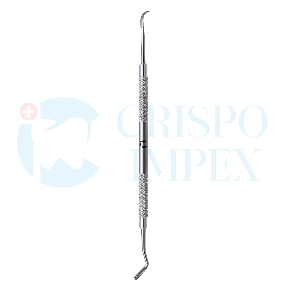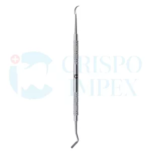 A versatile Instrument, featuring a flat thinned down tip to aid in band placement and a scaler on the other end to scrap off any excess cement.