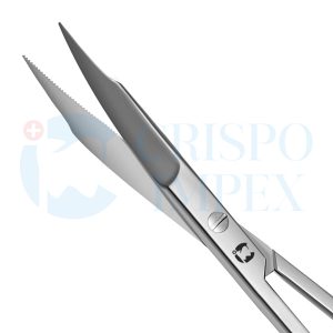 Super-cut series featuring one blade honed to “razor” sharpness while the opposing blade features fine-serrations to allow for maximum grip and minimize tissue slippage.